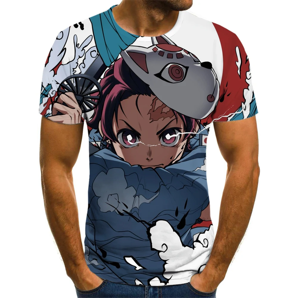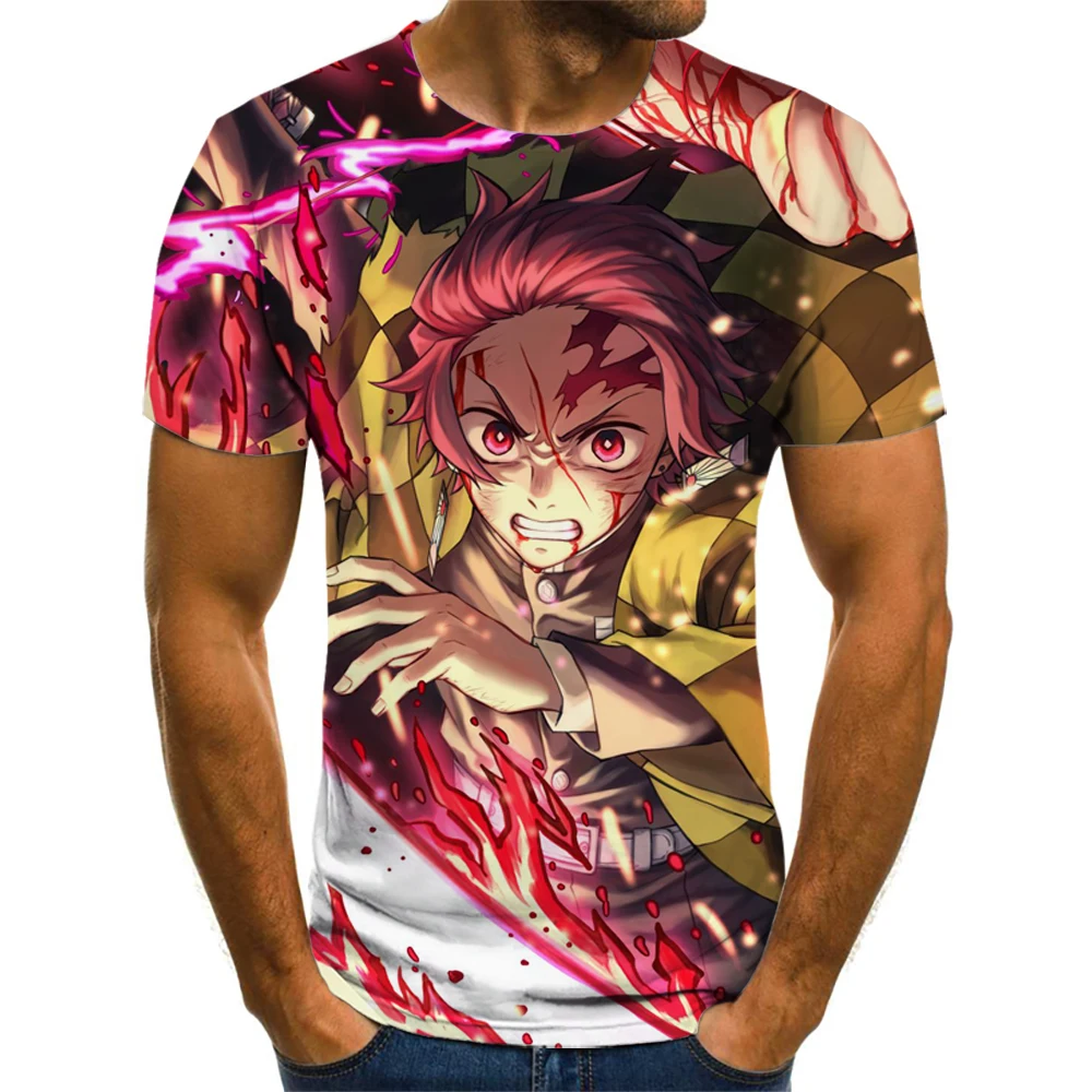 2021 Мужская модная футболка с 3D принтом из аниме рассекающий демонов, комиксы Kimetsu No Yaiba, детские топы, летняя мужская футболка