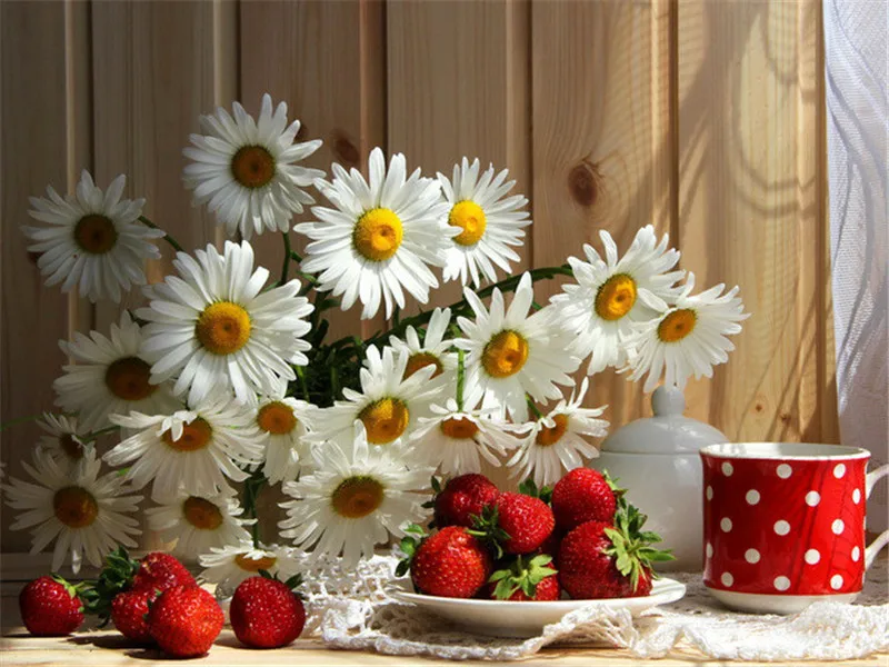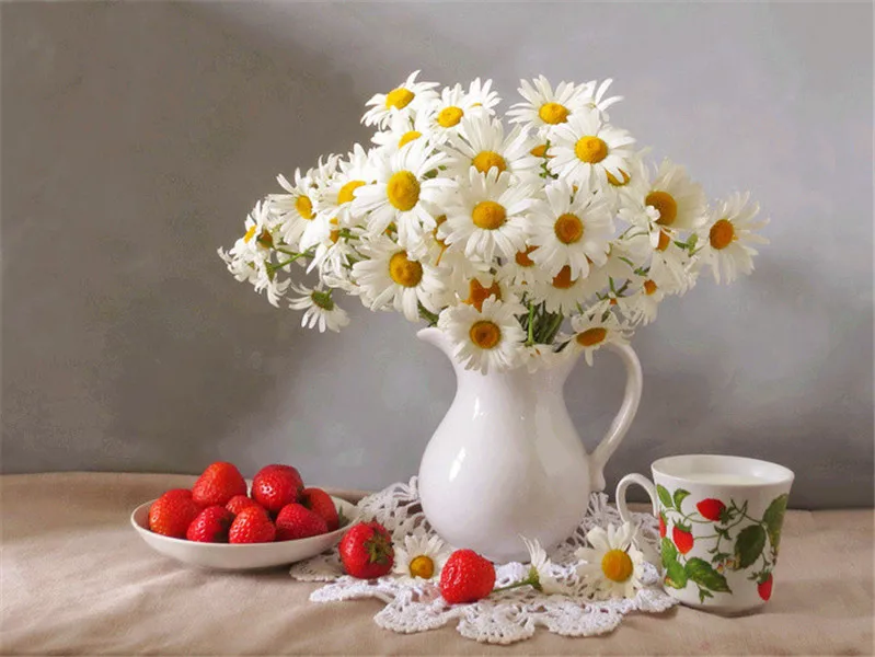 Набор для алмазной вышивки крестиком, картина с белыми маргаритками 5D сделай сам, аксессуары для творчества, Цветочная вышивка, полная выкладка, набор для домашнего декора стен