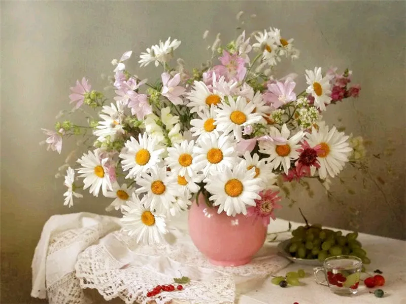 Алмазная картина 5D с полным напылением сделай сам, цветочная ваза,...