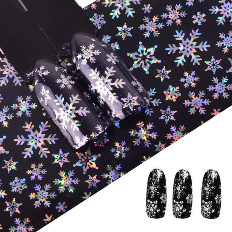 Переводная Фольга для ногтевого дизайна, Серебряные Снежинки, 3D на...
