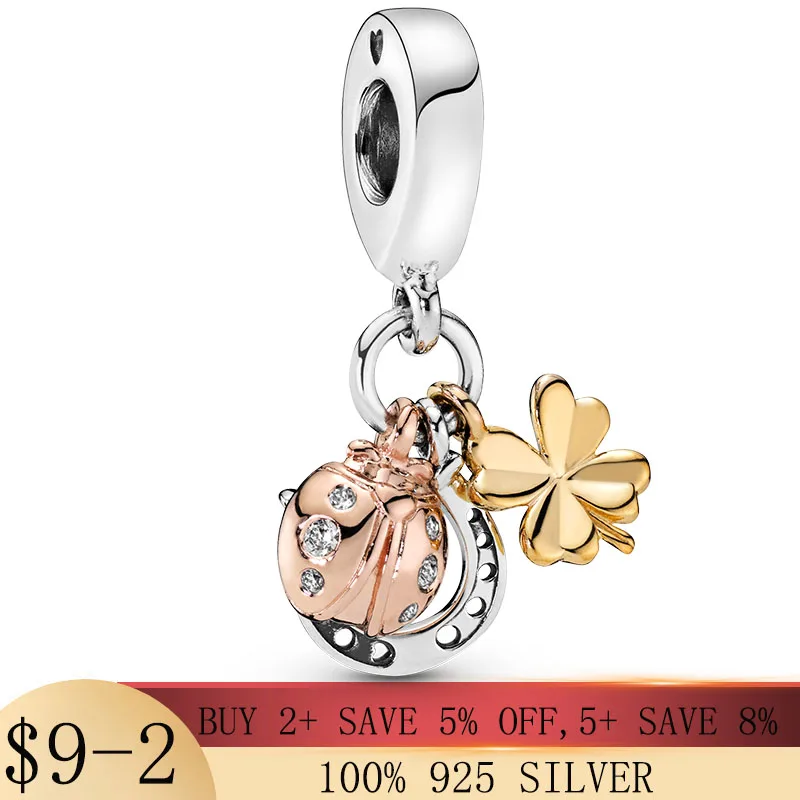 Подвеска-Шарм Подкова из серебра 2021 пробы, клевер и божья коровка