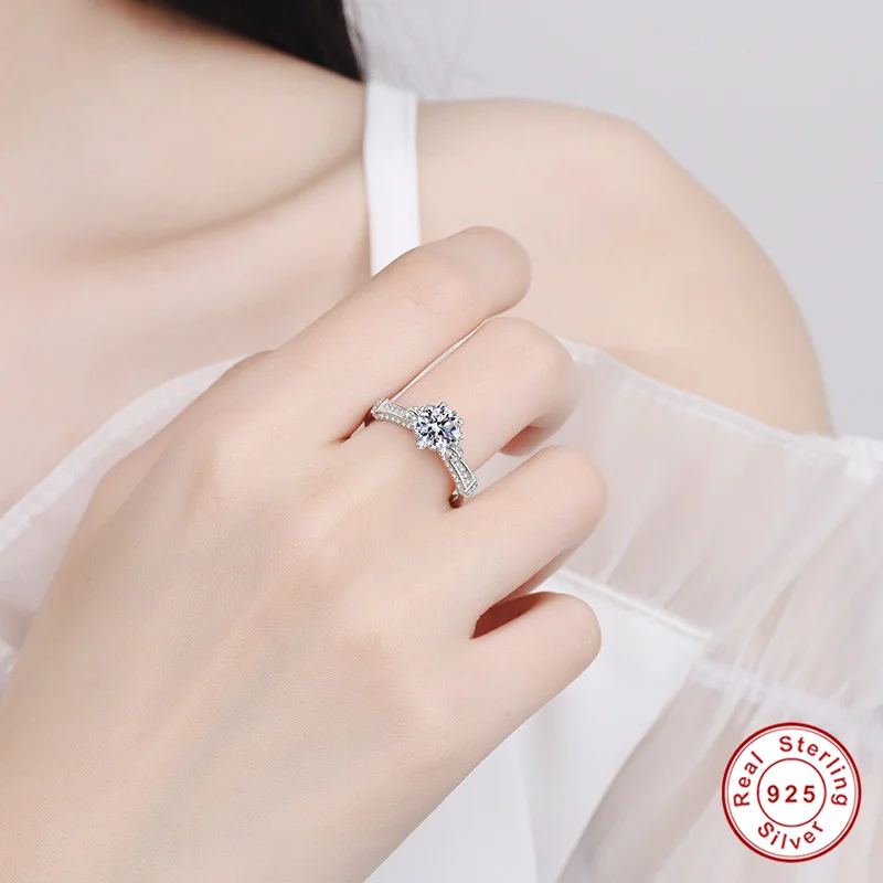 Кольцо женское из серебра 925 пробы с муассанитом 1-2 карата D, VVS1