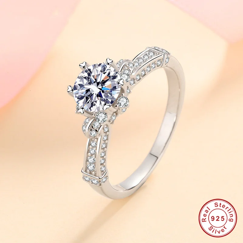 Кольцо женское из серебра 925 пробы, с муассанитом 0,5-2 карата