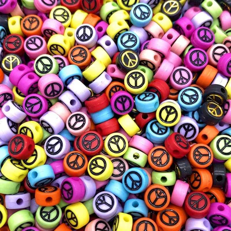 Бусины акриловые овальные, с символом мира, 7 мм, 100 шт.лот, #02