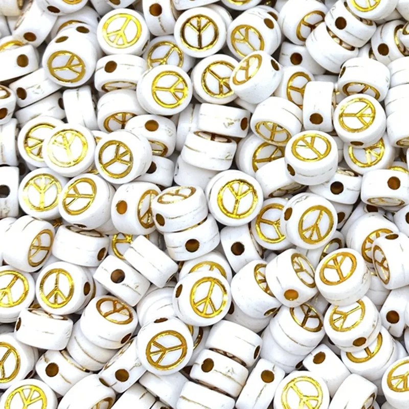 Бусины акриловые овальные, с символом мира, 7 мм, 100 шт.лот, #02