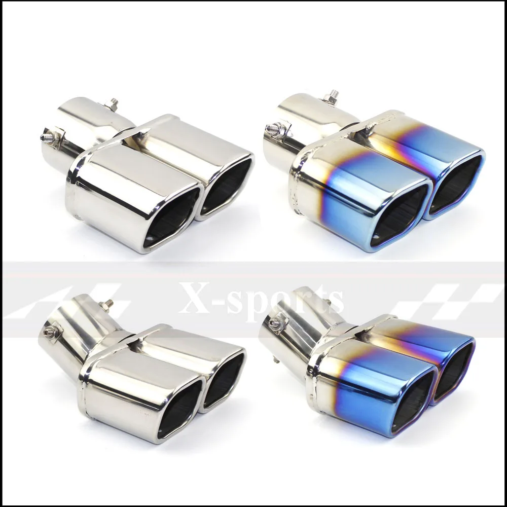 Наконечник выхлопной трубы на автомобиль, универсальный Выпускной глушитель из нержавеющей стали, квадратный конец, одно изменение, два, двойной выход, 60 мм, 75 мм