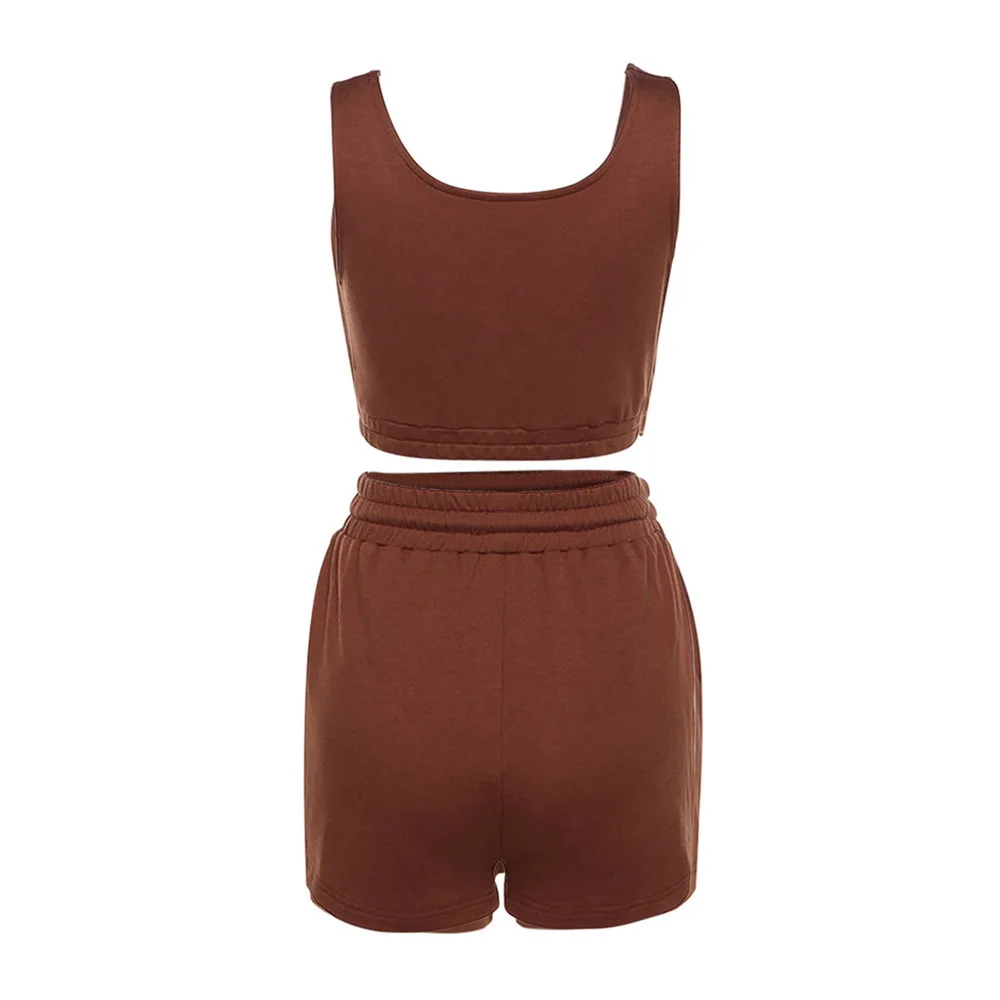 Женский спортивный костюм, однотонный комплект из двух предметов, укороченный топ и шорты на шнурке, спортивная одежда для отдыха, лето 2021