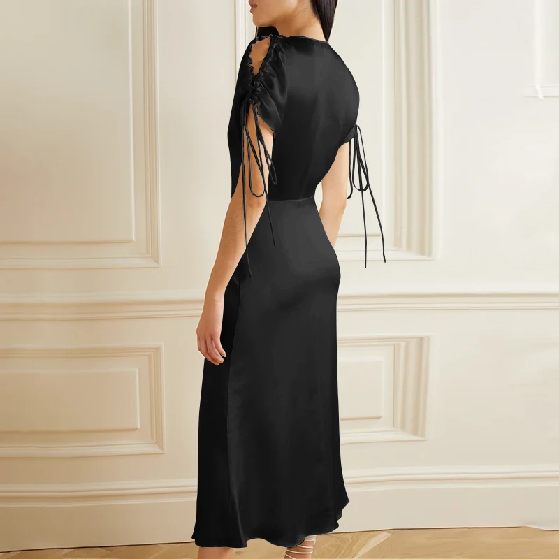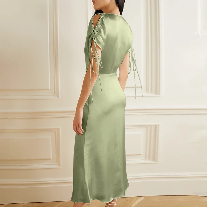 Номер моделиFemale Casual Satin Drawstring Summer Sundress