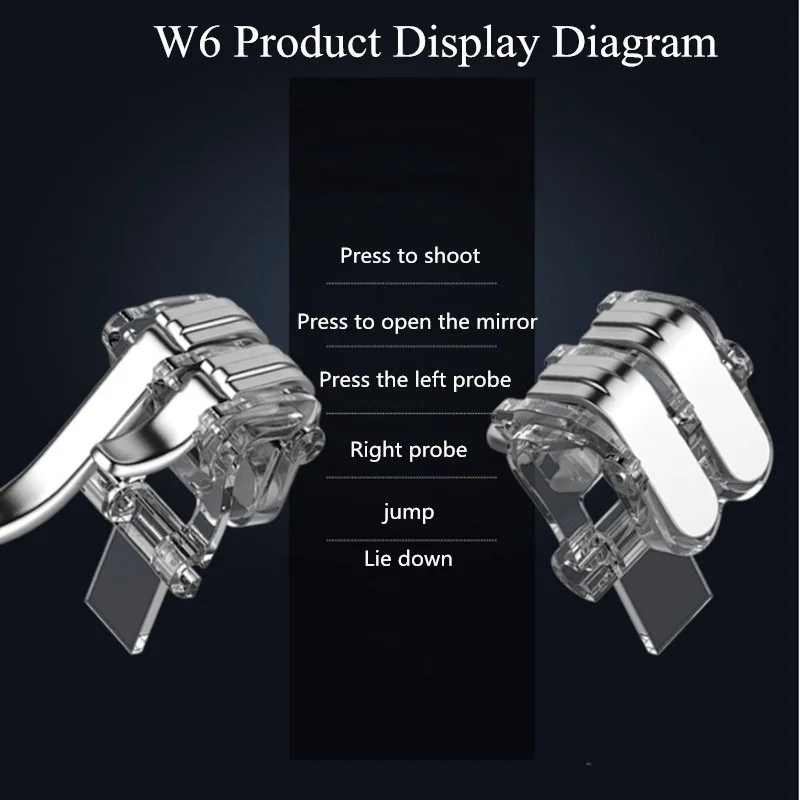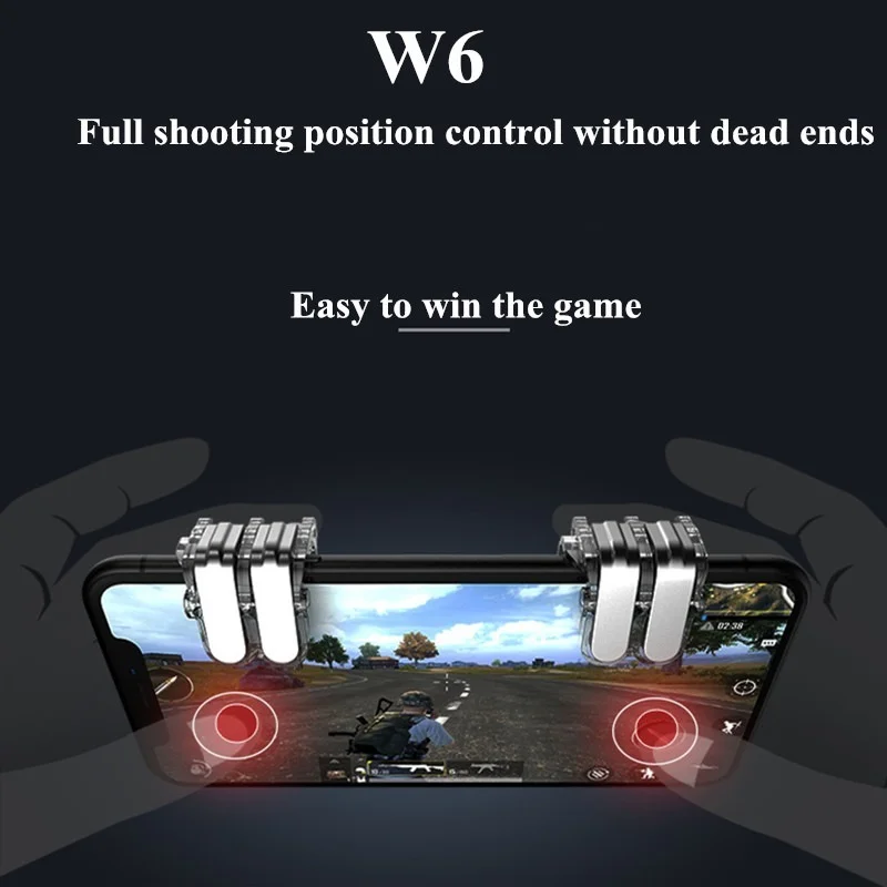 Мобильный игровой триггер W6 для PUBG, 6-пальцевый геймпад Fire L1R1, клавишная кнопка из сплава, контроллер для стрельбы по прицелу, джойстик для IPhone, Android