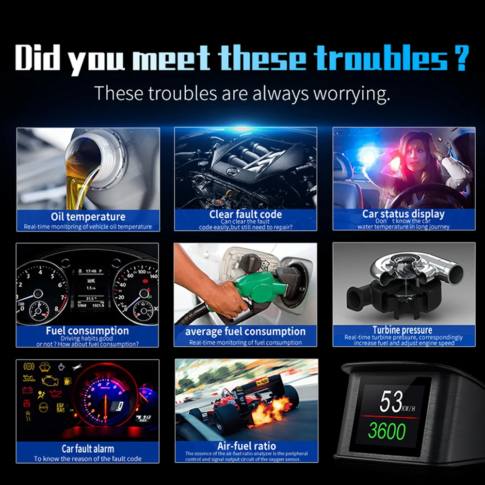 Сканер OBDSPACE P10 Obd2 для автомобиля, бортовой компьютер, цифровой дисплей HUD, измеритель температуры, расхода топлива, скорости