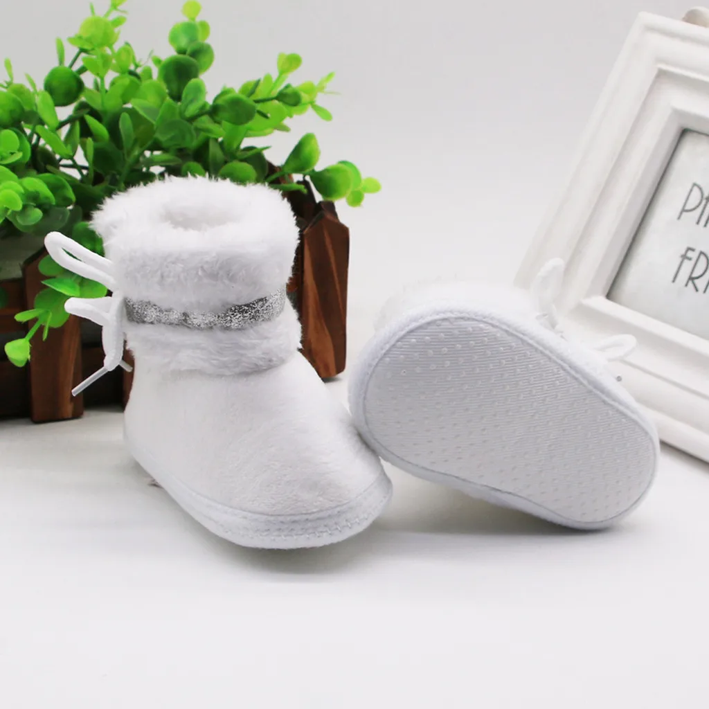 Детские ботинки со шнуровкой, утепленная теплая обувь Для маленьких девочек, зимние кашемировые плюшевые ботинки, бандажные теплые ботинки с мягкой подошвой Для Новорожденных