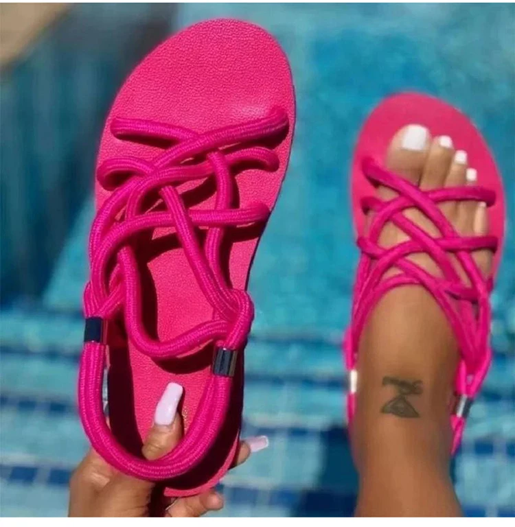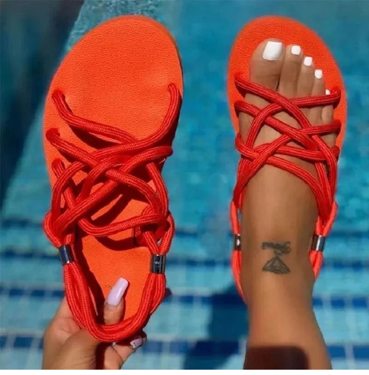 Сандалии женские, пляжные, в стиле ретро, гладиаторские плоские сан...