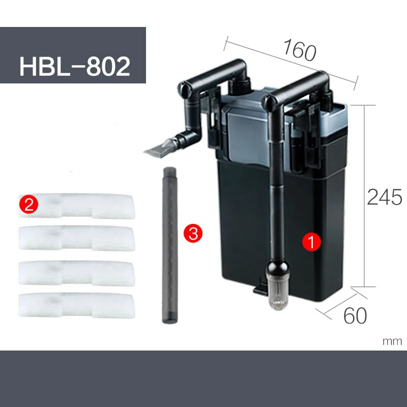 Наименование товара:Фильтр для аквариума SUNSUN HBL-801/802/803, настенный фильтр для аквариума, бочка, внешний фильтр для аквариума с травой, маленький фильтр для аквариумаПодвесной фильтр/крепежный фильтр SunSun HBL-802 оптимально подходит для небольших аквариумов, которым нет места устанавливать аквариумный фильтр в аквариуме.Аквариумный подвесной фильтр можно подключать к аквариумам объемом воды до 100 литров. Мощность насоса составляет 500 литров в час, при этом мощность насоса составляет всего 6 ватт. Сравнивая аналогичные фильтры, этот насос работает очень тихо. Расход воды в крепежном фильтре можно регулировать непрерывно, с помощью этого можно адаптировать под размер аквариума.Установка:Установка подвесного фильтра простая и осуществляется в течение нескольких минут. Корпус подвесного фильтра вешается сбоку или на задней стенке аквариума. Внутри аквариума установлен только аквариумный насос. Аквариумный фильтр подходит для аквариумов с пресной и морской водой.Материал фильтра:Фильтр крепления уже полностью оборудован. Поглотитель поверхности удерживает крупную грязь и мельчайшие частицы. Многоступенчатая система фильтров тщательно проясняет аквариумную воду.Наверняка Фильтр крепления можно снабжать индивидуально, например с биологическими фильтрующими материалами, такими как цеолит или кольца био-фильтра.Но обратите внимание на правильную регулировку фильтрующего материала. Если фильтрующий материал прерывает поток воды в аквариумном фильтре, аквариумный фильтр может переливаться.Сложный крепежный фильтр имеет размер: 160x270x280 мм и изготовлен из ударопрочной и устойчивой к царапинам смолы.Входное напряжение:220 В-240 В/50 ГцМощность: 6 ВтДетали фильтра: флис с фильтром из активированного угляРазмер аквариума: 60 литровПосылка входит:Продукт 1HBL-801 + Биохимический хлопок * 4Продукт 2HBL-801 + Биохимический хлопок * 4 + Носик от дождяПродукт 3HBL-802 + Биохимический хлопок * 4Продукт 4HBL-802 + Биохимический хлопок * 4 + Носик от дождяПродукт 5HBL-803 + Биохимический хлопок * 4Продукт 6HBL-803 + Биохимический хлопок * 4 + Носик от дождя