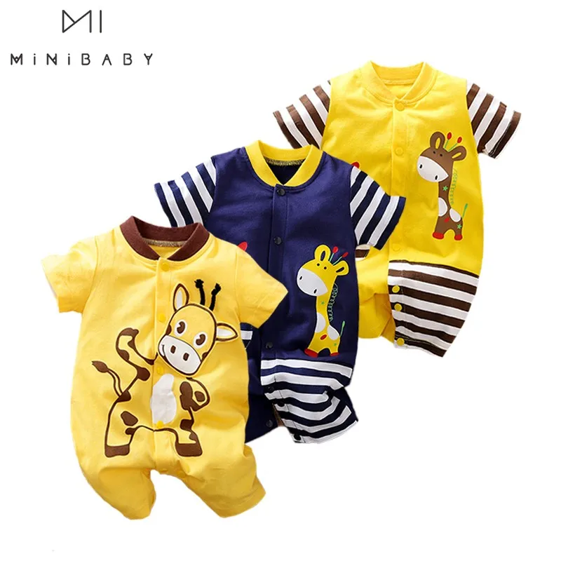 Летняя одежда для маленьких мальчиков комбинезоны с рисунками из мультфильмов, коллекция 2022 года, хлопковые комбинезоны для новорожденных девочек, детская одежда с короткими рукавами костюм с животными для детей возрастом от 0 до 24 месяцев