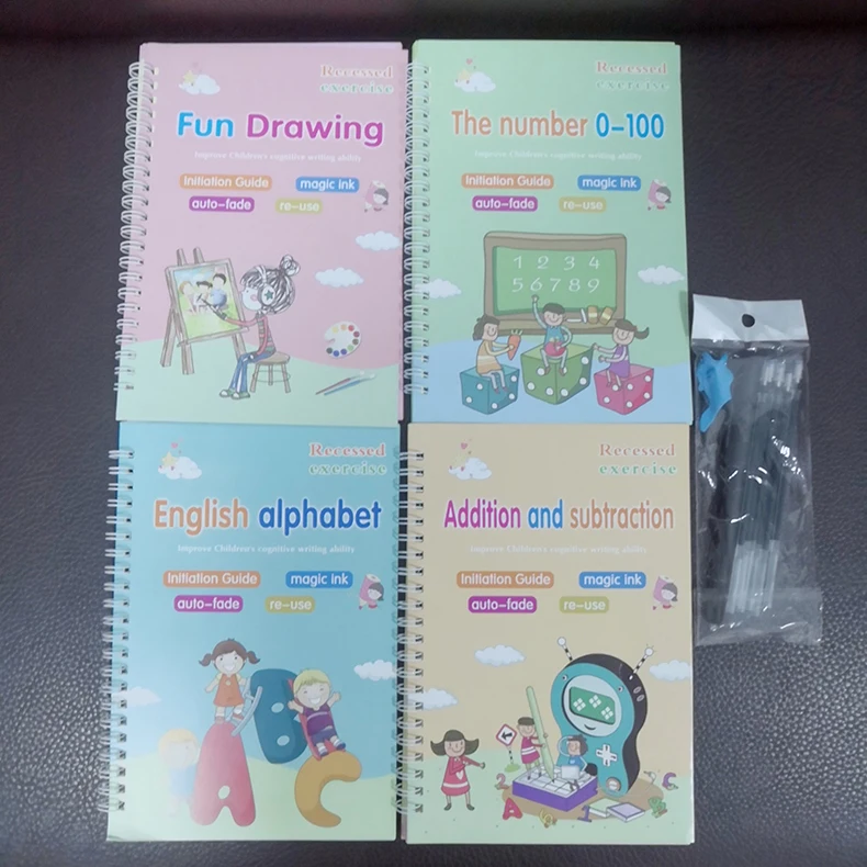4 книжки для обучения английской живописи, учебник многоразовый, Детская тетрадь для каллиграфии, письма, Детская английская буква, игрушка