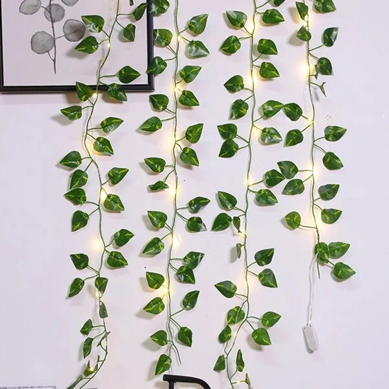 Гирлянсветильник с искусственными цветами, 2,2 м, 25 светильник тов, имитация зеленой листья ротанга