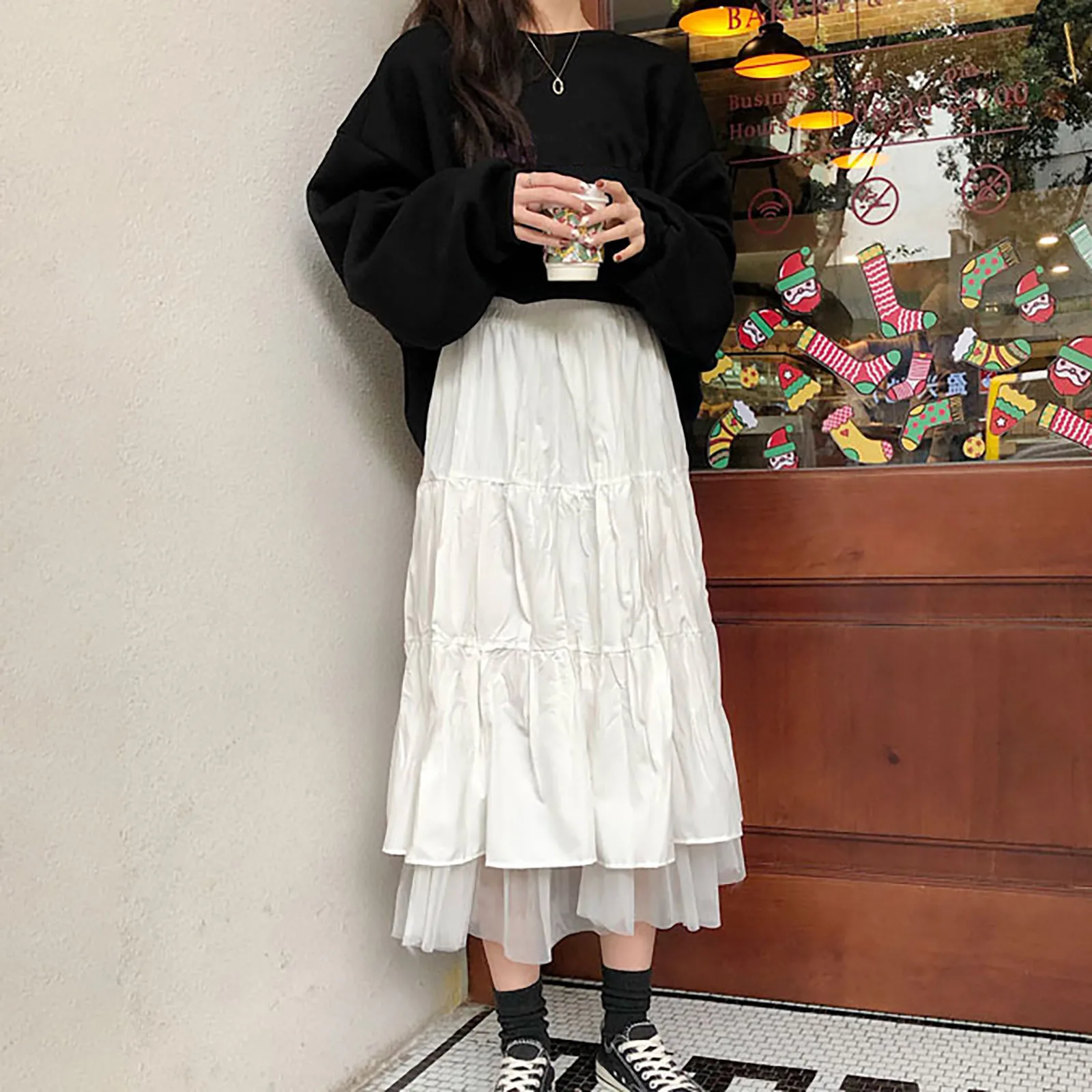 Женские юбки в стиле Харадзюку 2021, женская белая трапециевидная юбка средней длины с высокой талией, сетчатая юбка в Корейском стиле, Длинная женская юбка