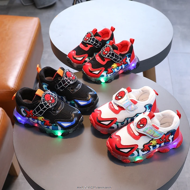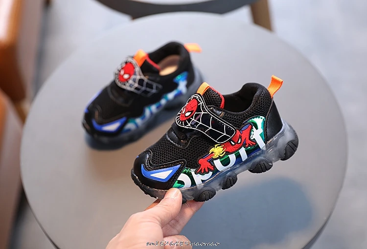Детские кроссовки для мальчиков со светодиодами Человек-паук, детск...