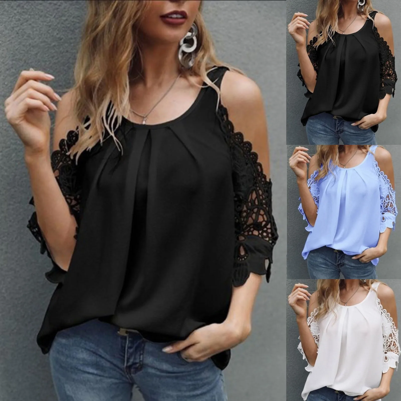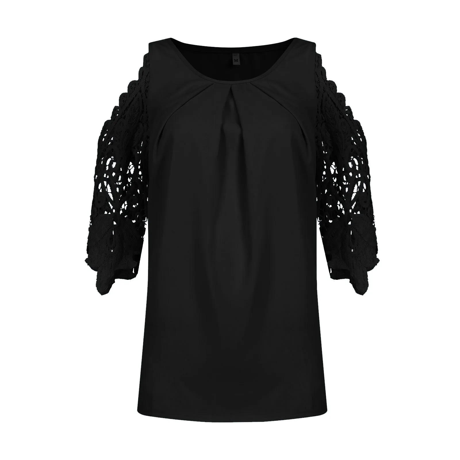 Туника с открытыми плечами, топы для женщин, размера плюс, 2021, летние блузки и сорочки, черная офисная одежда с длинным рукавом и вырезами