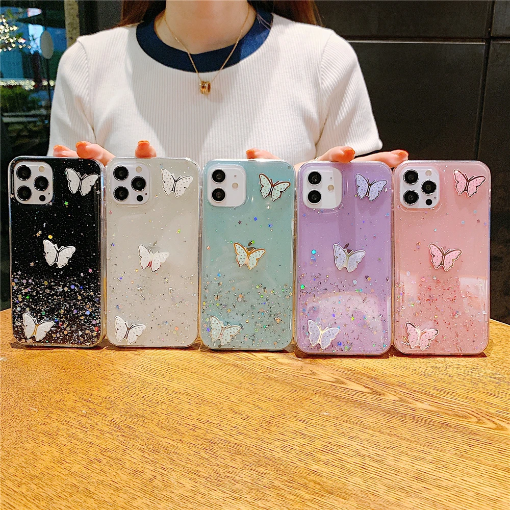Блестящий бабочка с блестками Мягкий чехол для телефона из ТПУ для ...