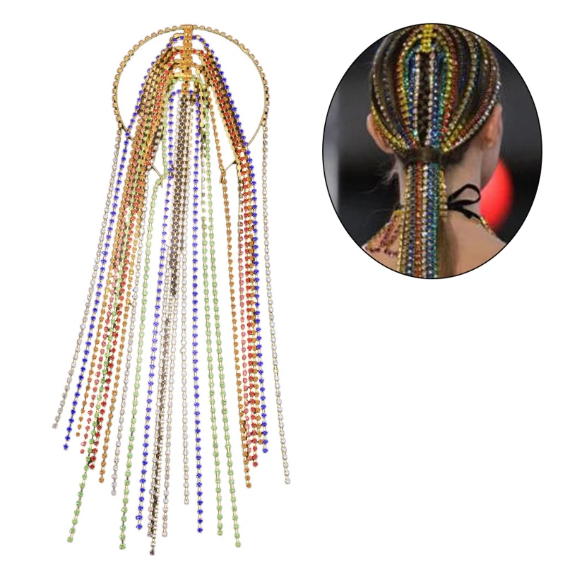 Клеопатра Красочные Стразы Кепки Богиня Украшения для волос Великий Гетсби для волос аксессуар с кисточками; Головной убор для Косплэй