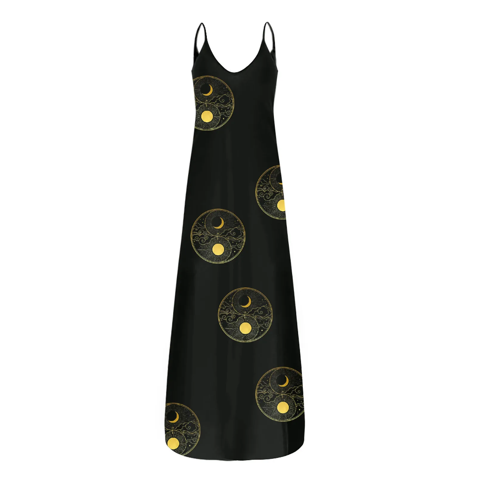 Женское длинное платье макси, с принтом, с глубоким V-образным вырезом