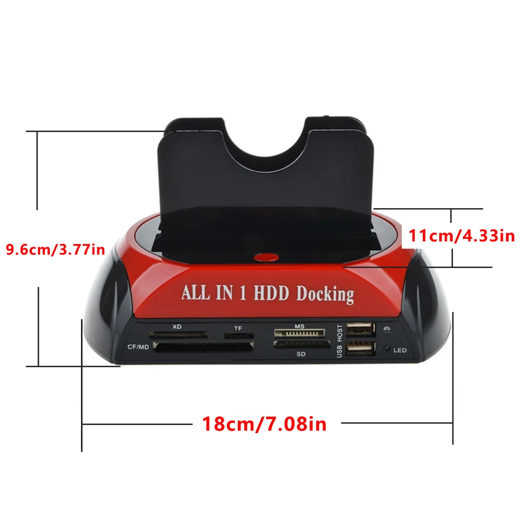 Описание:Этот вид HDD док-станция подходит для SATA и IDE/SATA жесткого диска, 2,5 дюймовый ноутбук SATA и IDE/SATA жесткого диска и 3,5 дюймов для рабочего стола, в том числе SATA и IDE/SATA жесткого диска, поддержка чтения нескольких карт (XD / CF / MD / TF / MS/карта памяти).Вы можете вставить жесткий диск в базу без установки, и вы можете подключить usb-порт, когда компьютер работает, замена для Windows 2000 / XP / Vista / Win7, замена для Mac и замена для OS.Встроенный жесткий диск обеспечивает быструю передачу данных, а независимый выключатель питания делает вашу работу более удобной и надежной.Этот HDD док-станция является простых в использовании, вы можете изменить 2,5 дюймов/3,5 дюймов SATA жесткий диск без отсоединения, с мягким силиконовым 2,5 дюйма IDE/SATA слот, 3,5 дюйма IDE/SATA слот и слот SATA, который работает с большой совместимостью.В светодиодный светильник может отображать мощность и чтение диска состоянии, поддерживающий 1 ТБ жесткий диск под систему Замена для XP и Поддержка max 6 ТБ жесткий диск под систему Замена для Win7/8/10, И он может поддерживать макс. 32G карту памяти, вы можете сделать резервную копию данных через порт USB.Спецификация:Материал: АБС-пластик, поликарбонат.Цвет: черный и красный.Размер: 18 см * 11 см * 9,6 см.Порт: от USB2.0 до IDE, от SATA до ESTAT.Тип порта: концентратор USB2.0.Скорость передачи: USB2.0 480 Мбит/с.Поддержка карт памяти до 32 Гб, поддержка функции резервного копирования одним нажатием (только на usb-порте).Примечание:В связи с неточной передачей цвета на экране монитора фактический цвет товара может немного отличаться от цвета на изображении.Пожалуйста, допускайте небольшое отклонение в данных измерений и убедитесь, что вы не возражаете перед заказом.Посылка включает в себя:1 док-станция для жесткого диска.1x USB кабель.1x адаптер питания.1x введение.