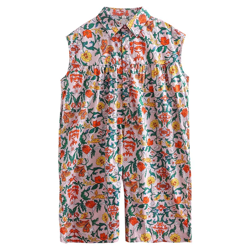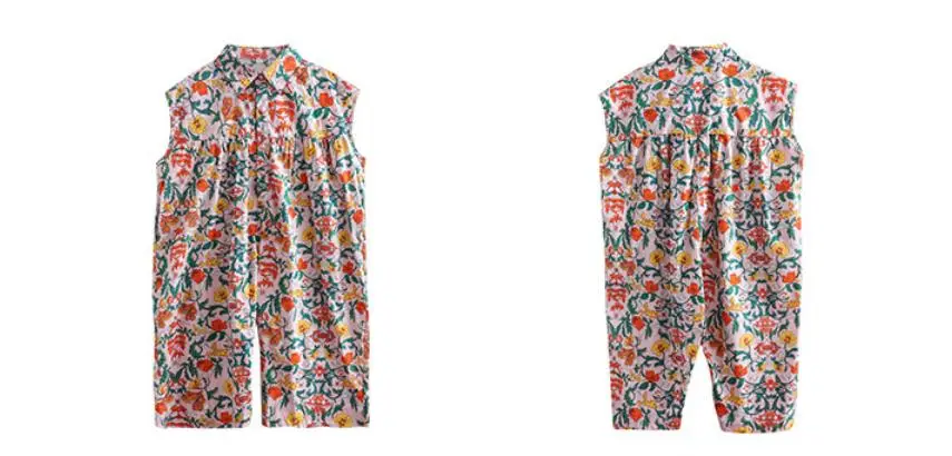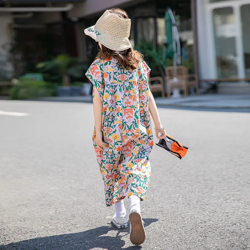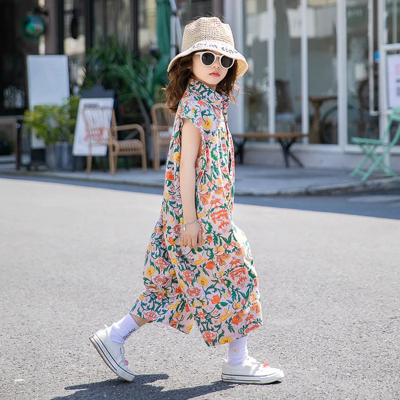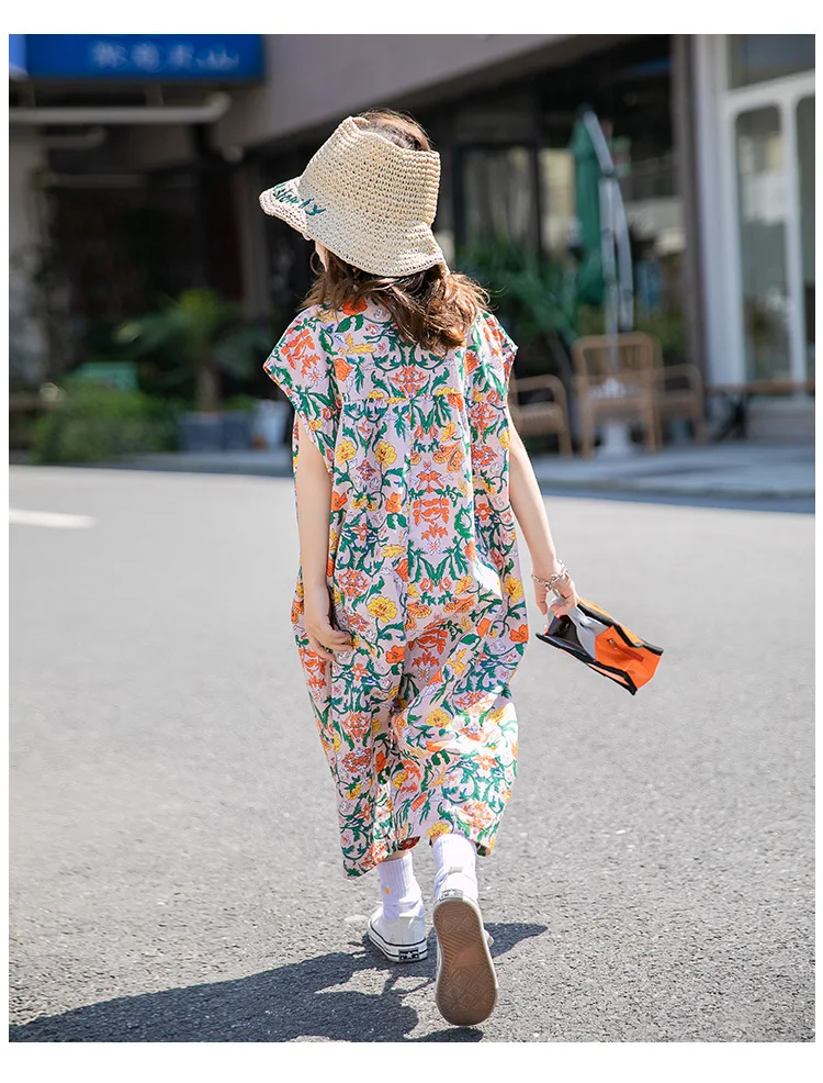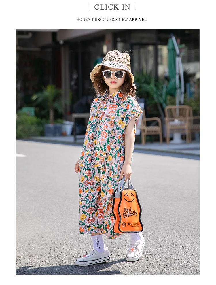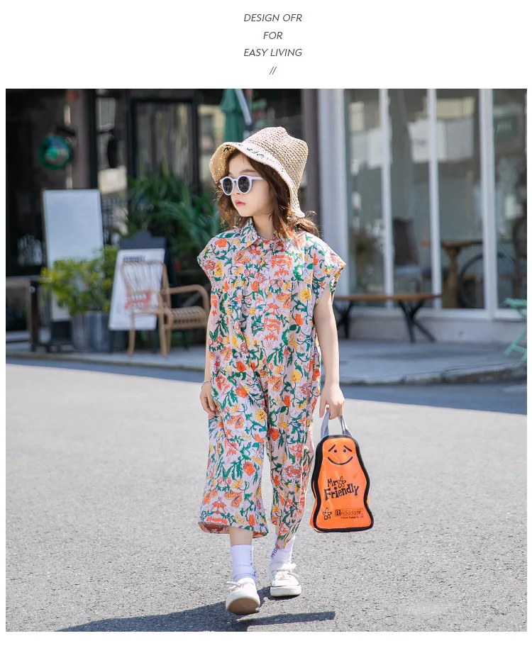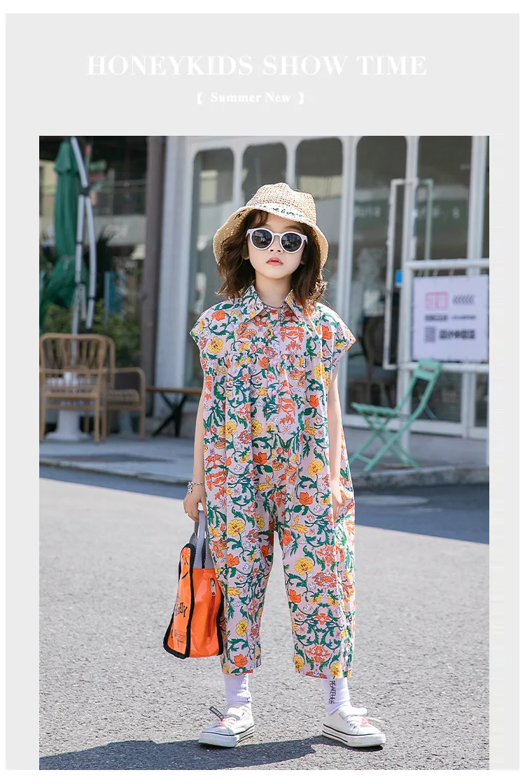 Летний комбинезон для девочек; Модное боди с цветочным рисунком; Свободный комбинезон с широкими штанинами для девочек-подростков; Повседневная одежда для детей 12, 13, 14 лет