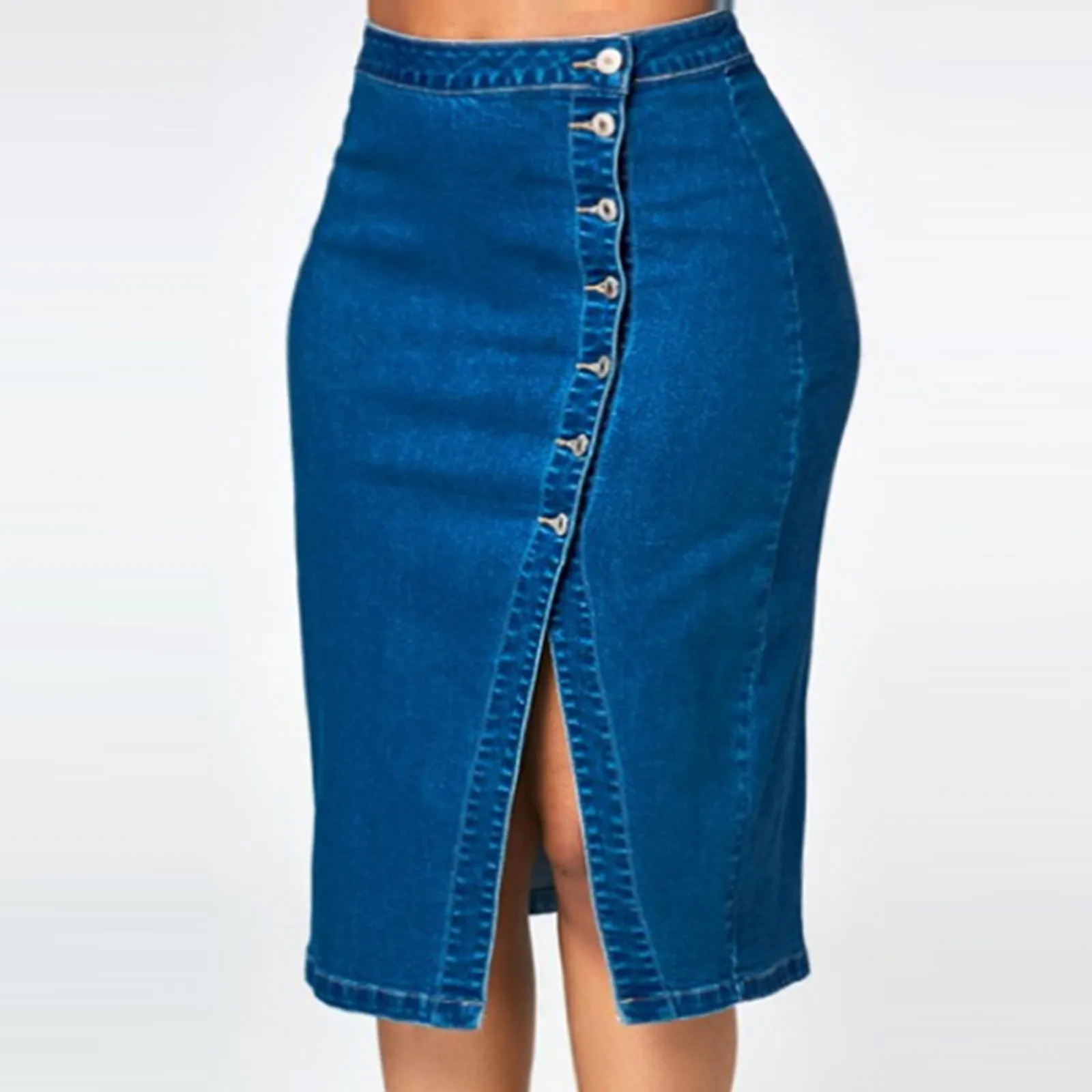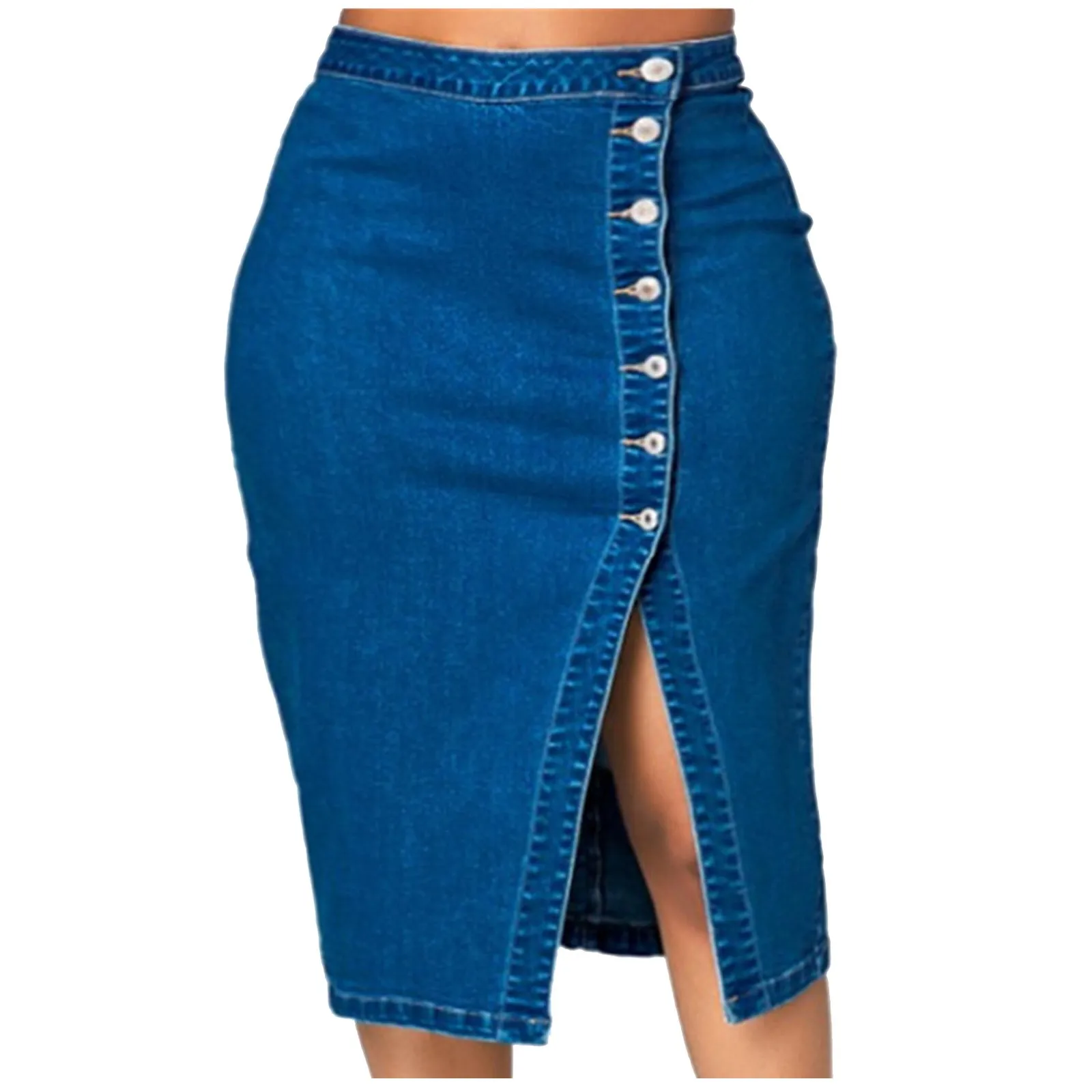 Женская модная повседневная пикантная однобортная джинсовая юбка с высокой талией