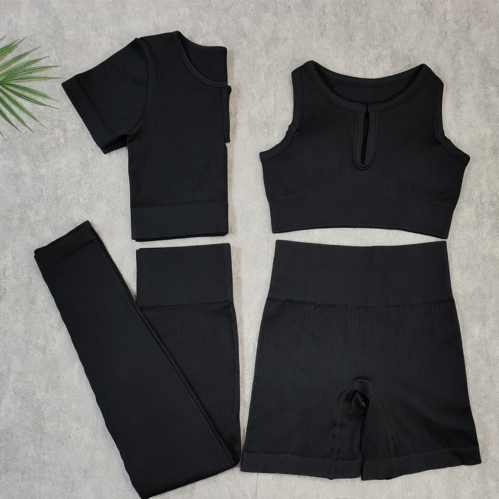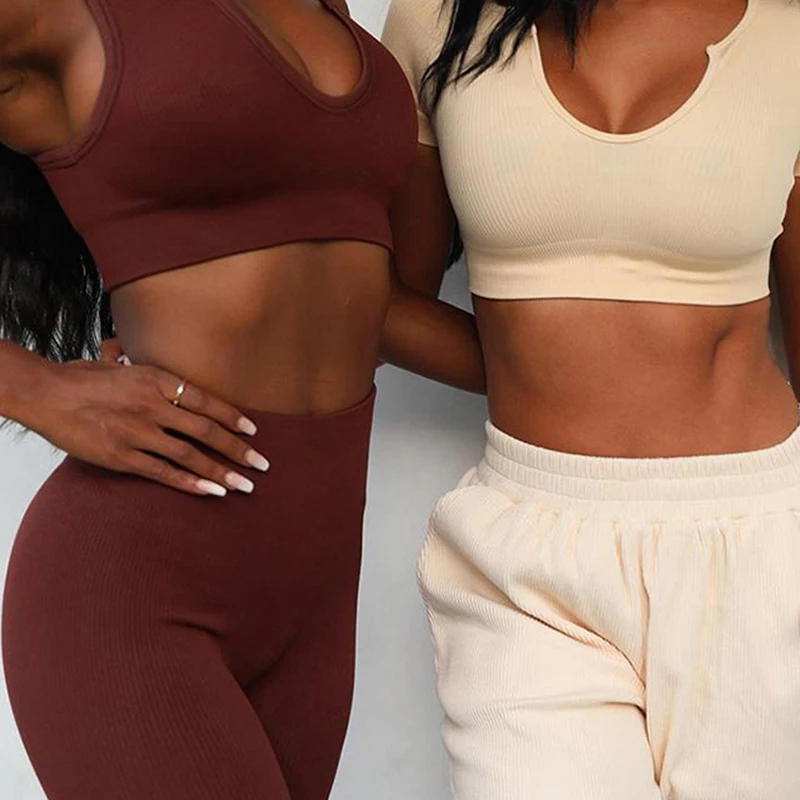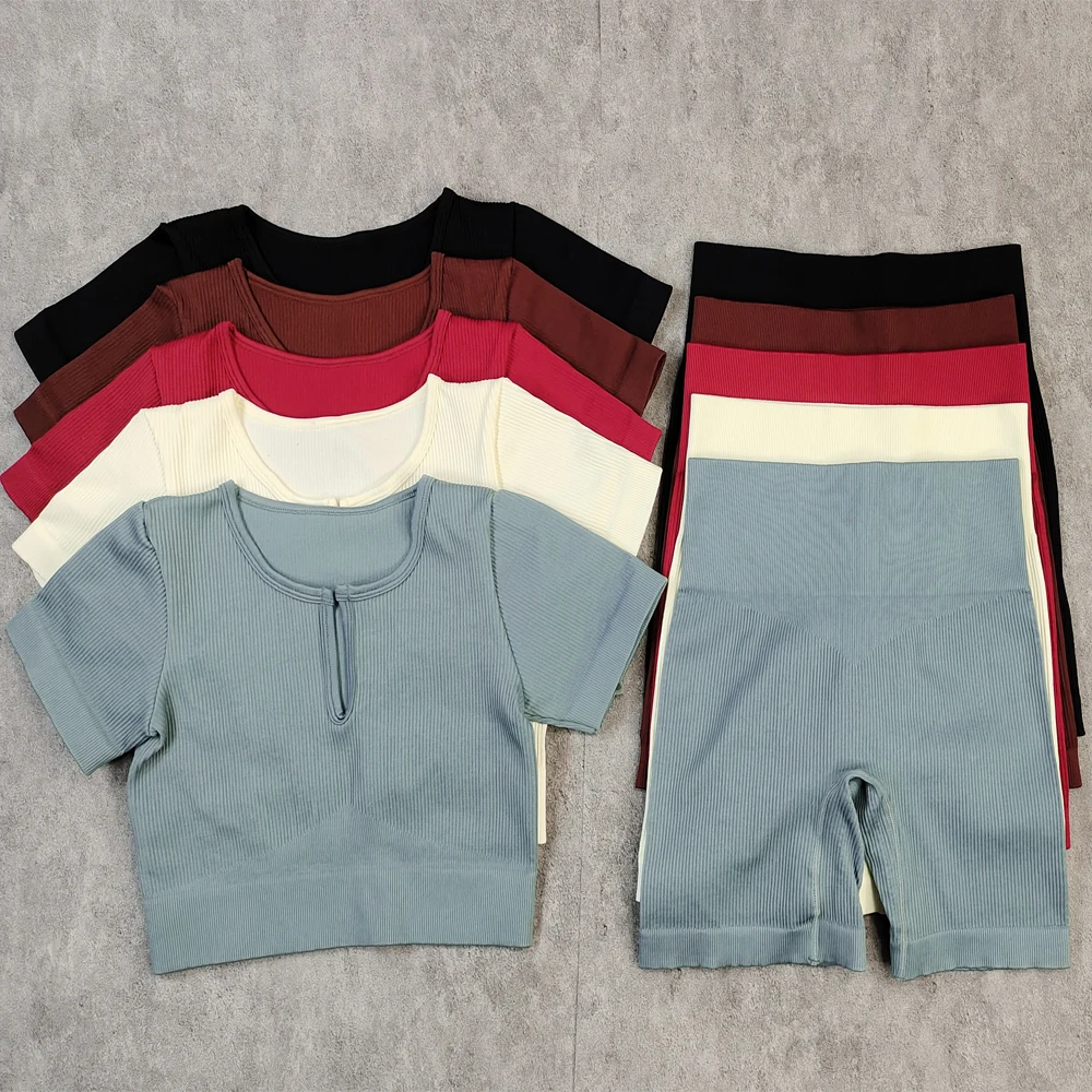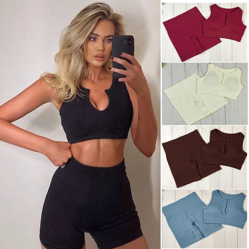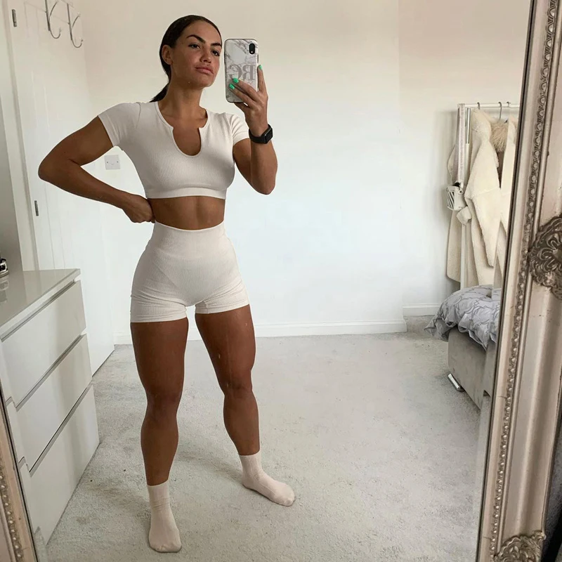 Комплект Спортивный женский из 2 предметов, укороченный топ и шорты, бесшовный, костюм для фитнеса для тренировки