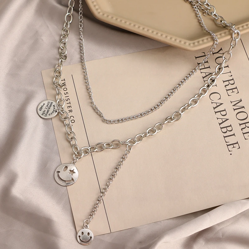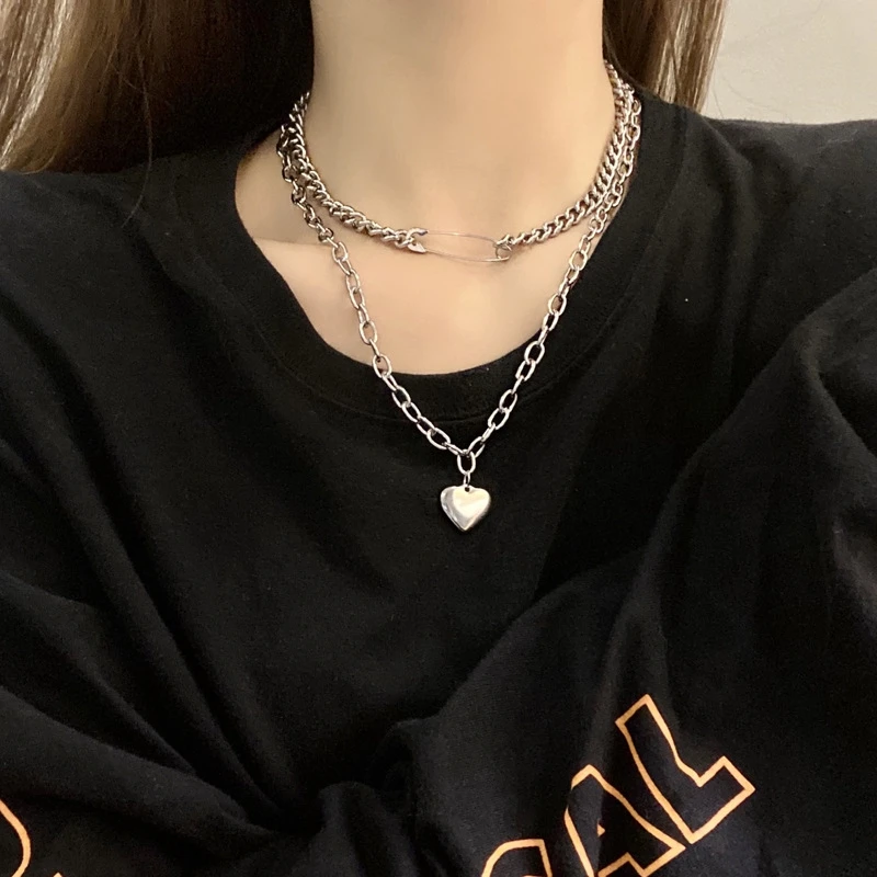 Поцелуй жена Kpop серебро Цвет нержавеющая сталь Multilayerd ожерелье для женщин в готическом стиле кулон цепочка колье-чокер 2021 модные ювелирные изделия подвеска