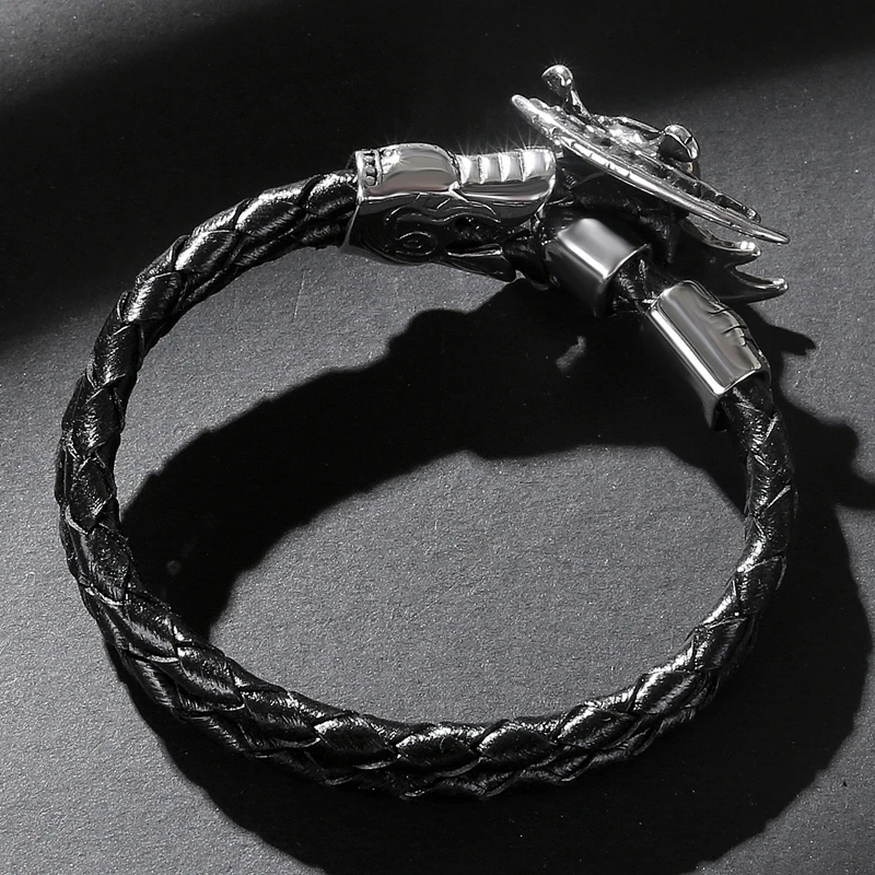 Изысканный плетеный кожаный браслет с защелками из нержавеющей стал...