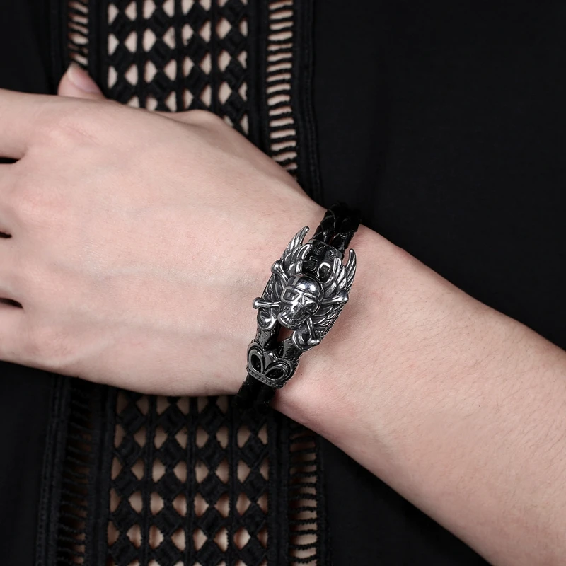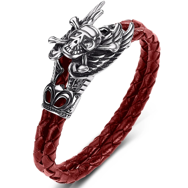 Новые модные кожаные браслеты со скелетом из нержавеющей стали, мно...