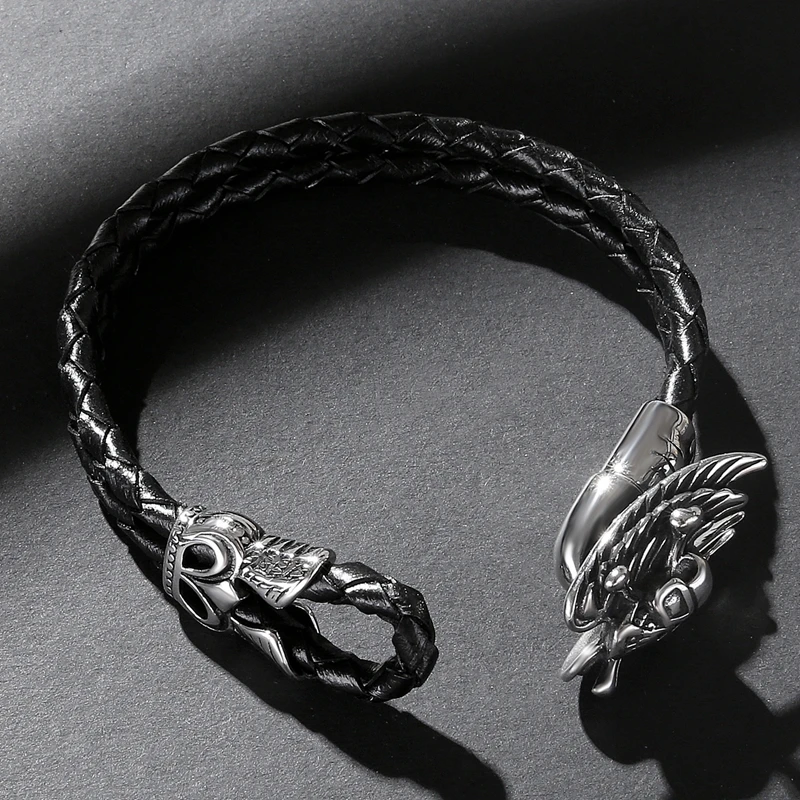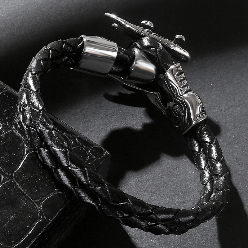 Мужской кожаный браслет в стиле панк-рок, из нержавеющей стали