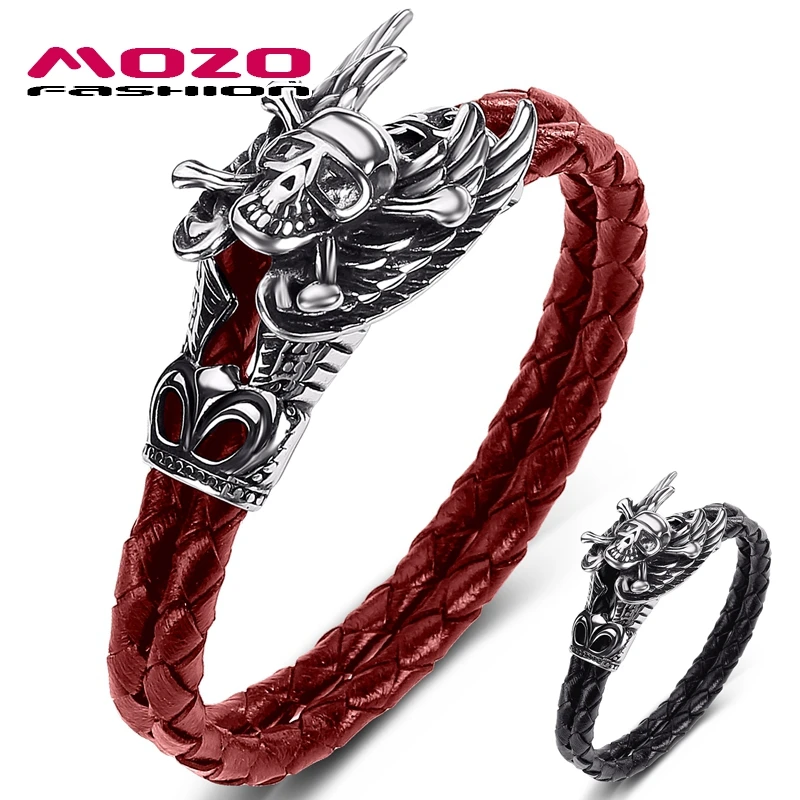 Мужские ювелирные изделия MOZO, из натуральной кожи черного цвета, из нержавеющей стали, в стиле панк, дьявол и ангел, шарм, браслет 2021