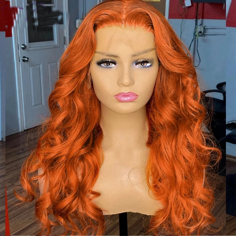 26 дюймов оранжевый кружевной передний синтетический парик длинные волнистые волосы с детскими волосами средний парик термостойкие волосы из волокна