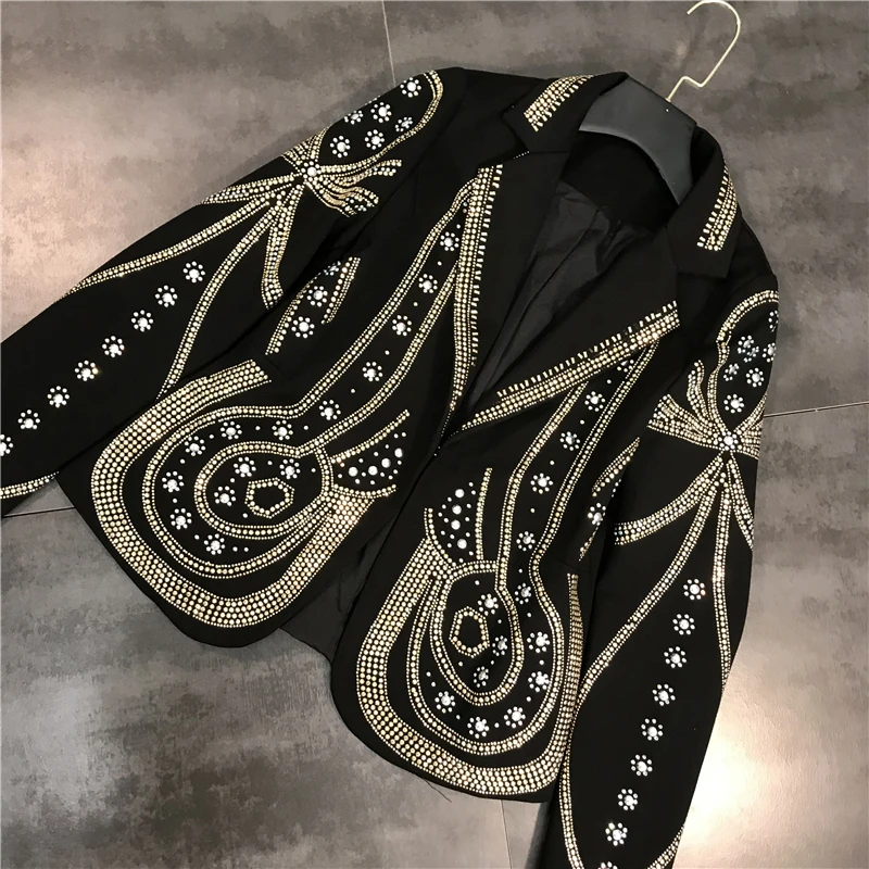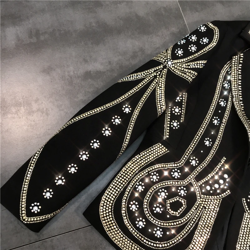 TWOTWINSTYLE, черные повседневные куртки с принтом для женщин, воротник с лацканами, длинный рукав, Хит, цвет, бриллианты, пальто для женщин, 2022, модная новинка