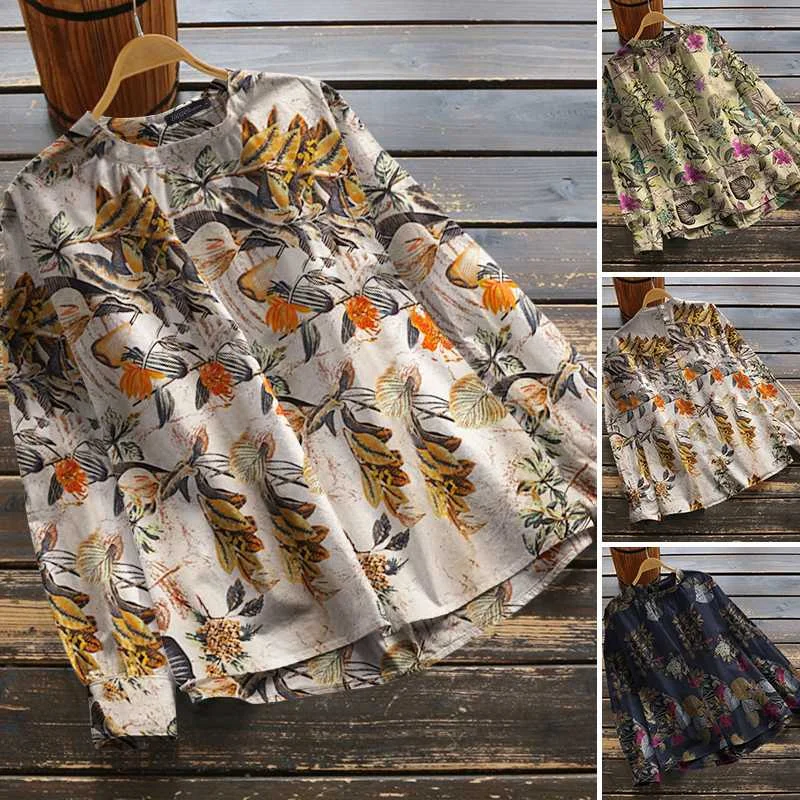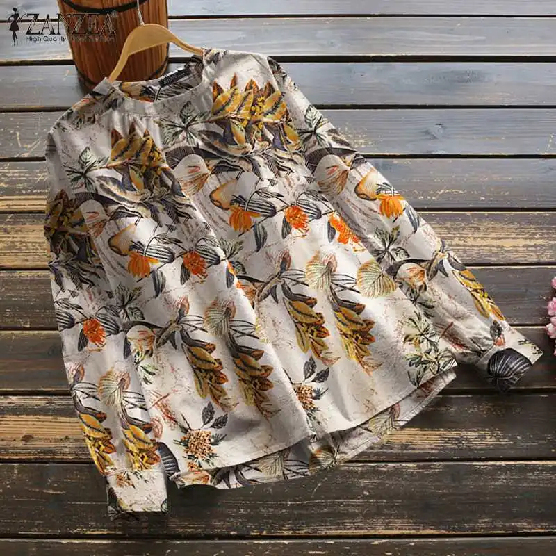 Винтажная Цветочная блузка ZANZEA 2021, женские рубашки с длинным р...
