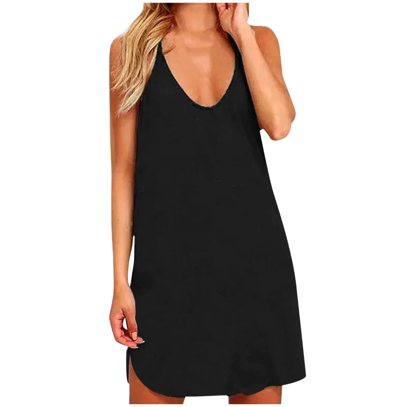 Однотонные летние платья с открытой спиной для женщин 2021, сексуальные майки без рукавов, вечерние нее мини-Платье, уличная одежда, женское Платье, платья