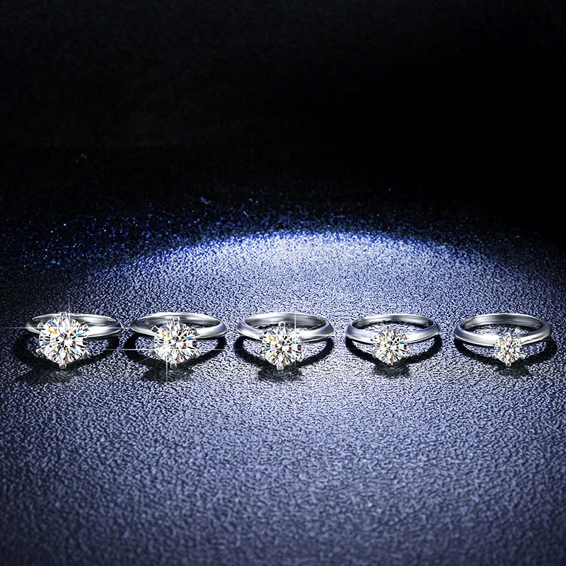 Твердое обручальное кольцо из стерлингового серебра 6 зубец 0.5CT 1CT 2CT Moissanite, обручальные кольца с бриллиантами для женщин, подарок, хорошее ювелирное изделие