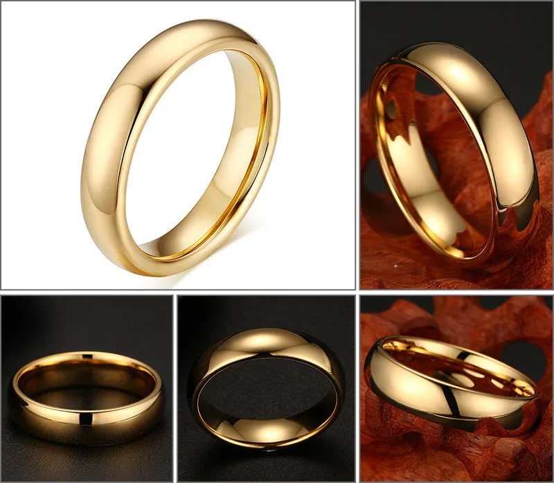 Модные кольца KURSHUNI из 100% чистого вольфрама, ширина 4 мм6 мм, обручальные кольца золотого цвета, ювелирные изделия
