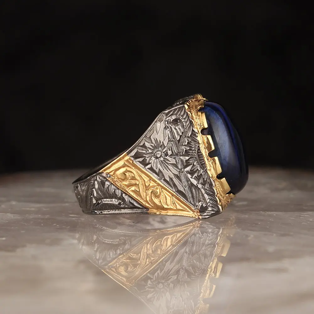 Тигровый глаз, позолоченное серебро 925 пробы, гравировка, традиционная турецкая вывеска ручной работы, кольцо, лучшая ручная работа, ювелирные изделия, подарок для женщин и мужчин