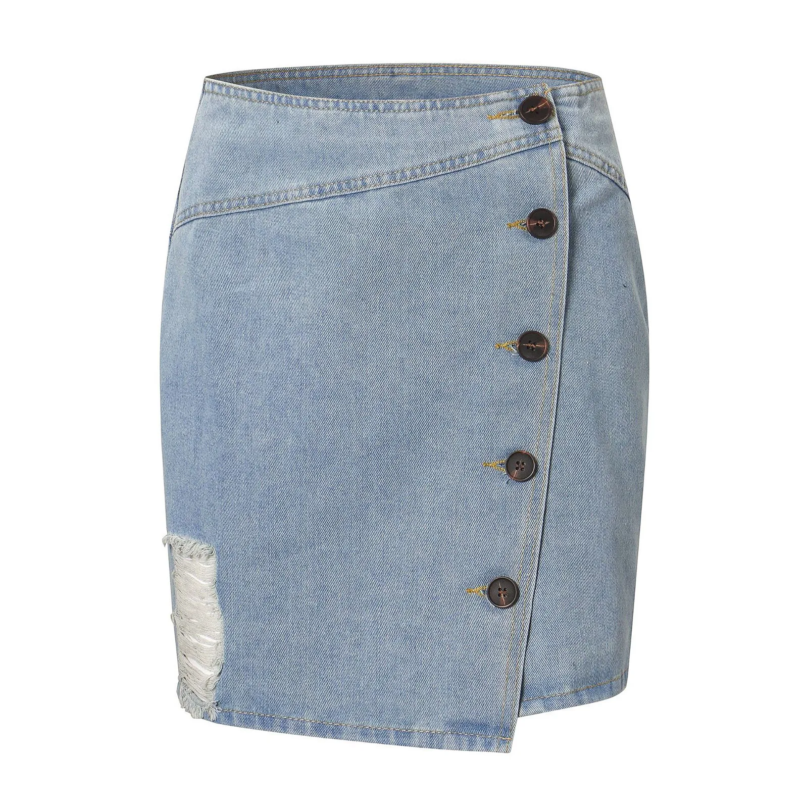 Женская летняя повседневная модная сексуальная джинсовая юбка на пуговицах с высокой талией