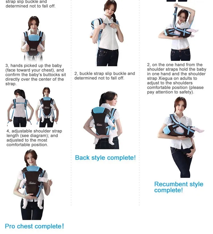 4 режима переноски: Обхват груди, стиль кенгуру, переноска сзади, перекрещивание рук