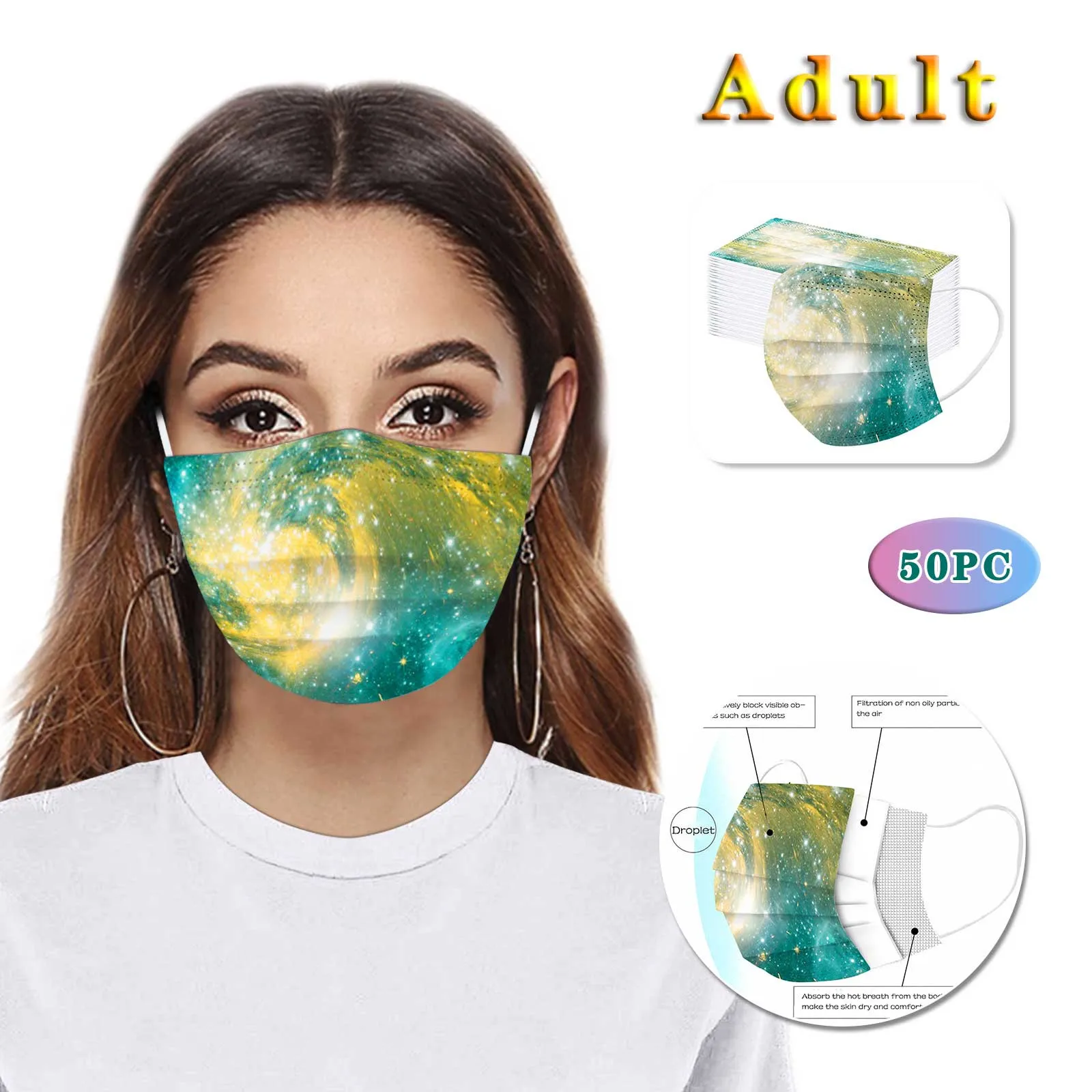 50 шт трехслойная Защитная Пыленепроницаемая одноразовая маска для печати Tie-dye для взрослых