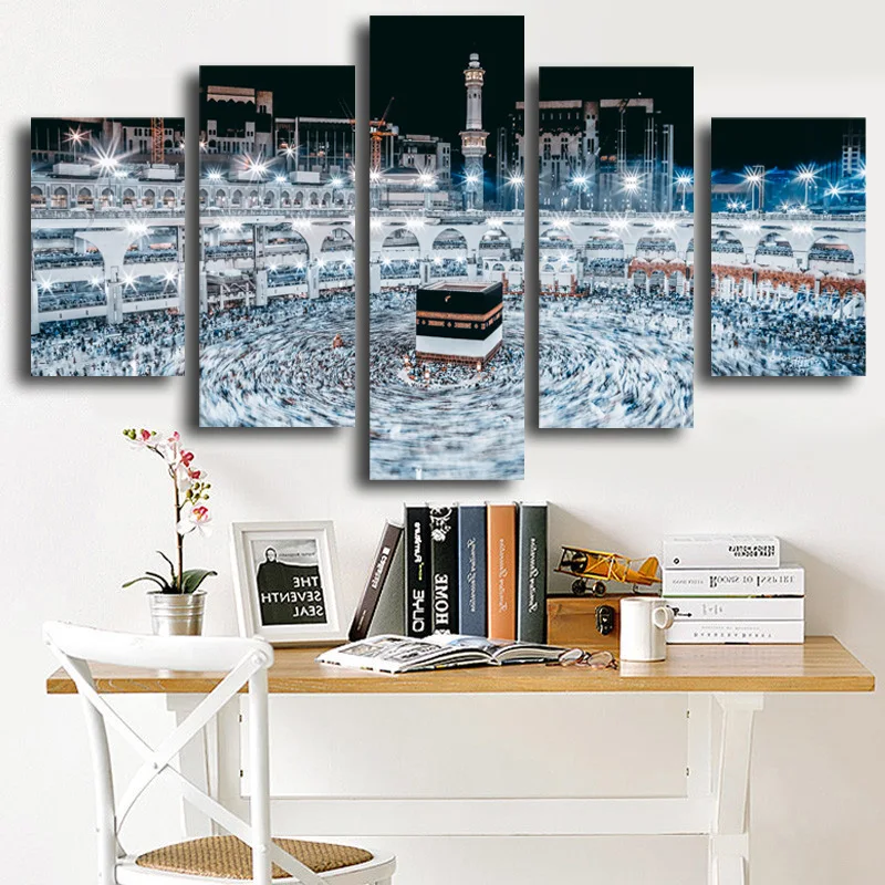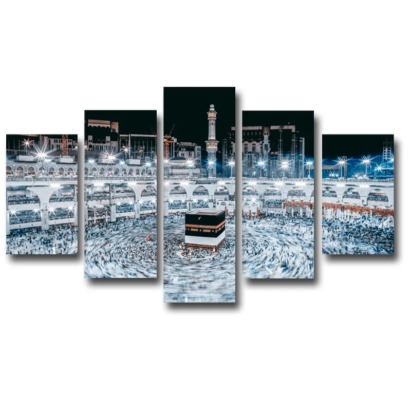 5 панелей HD Печать ислам Мекка Круглый Орнамент вид мечеть Ночной ...