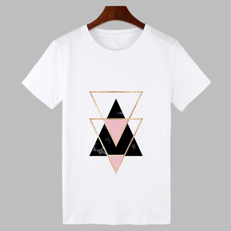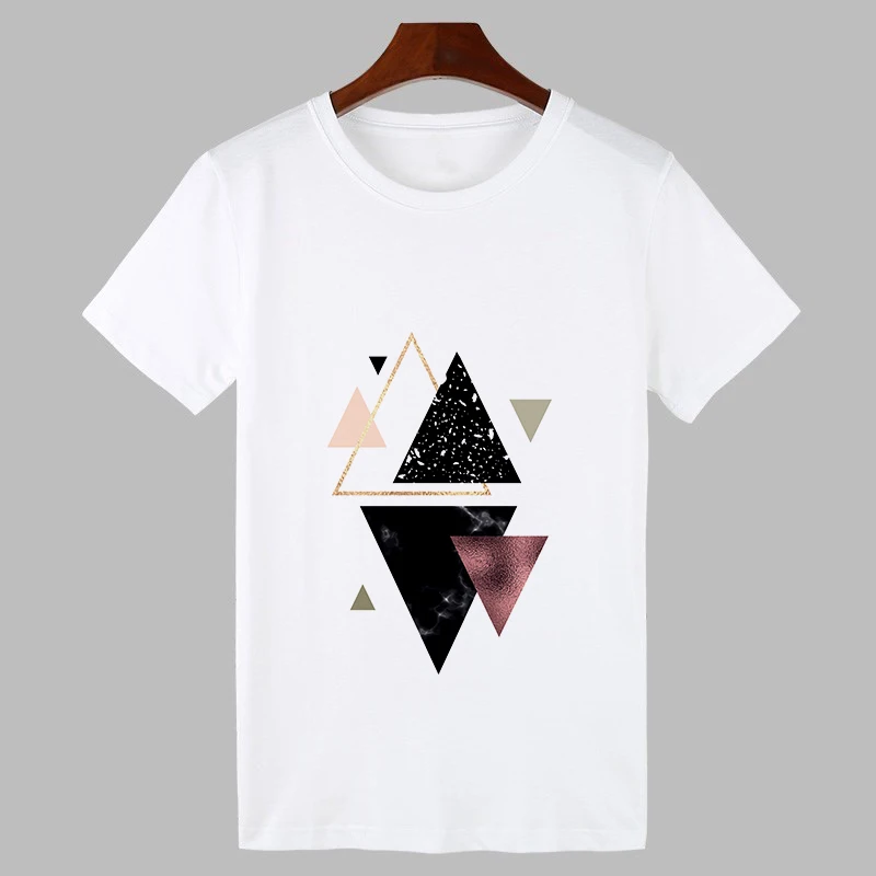 Футболка женская с геометрическим принтом, короткий рукав, кроп-топ в стиле Харадзюку, 2021, Лето Уличная одежда с мотивами из аниме