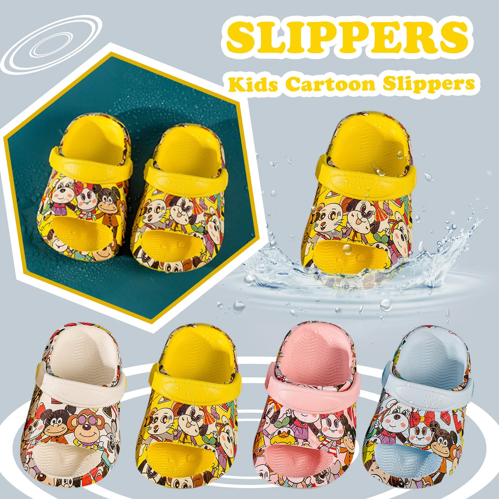 Тапочки детские с мультяшным рисунком, сандалии из ЭВА, мягкие Нескользящие, водонепроницаемые, летняя обувь для мальчиков и девочек