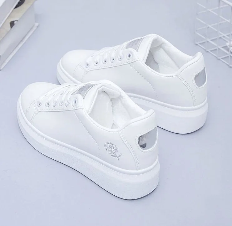 Женские теннисные туфли на шнуровке, белая женская обувь из искусст...