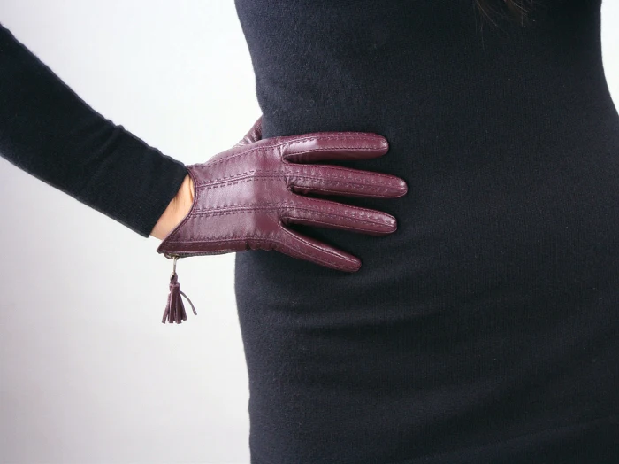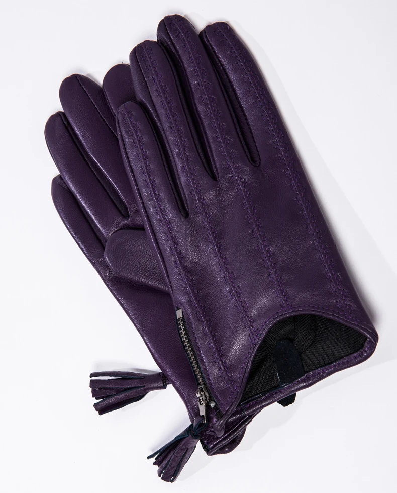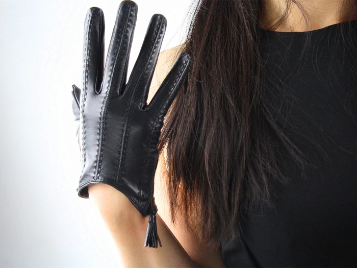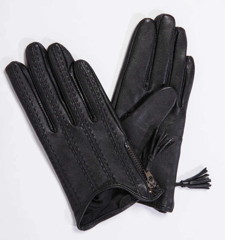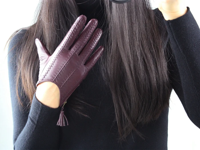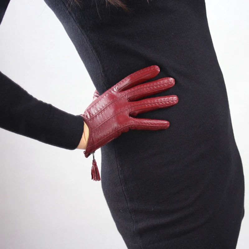 Модные женские перчатки из натуральной кожи красные классические высококачественные перчатки из козьей кожи для сенсорных экранов короткие кожаные перчатки на молнии с кисточками